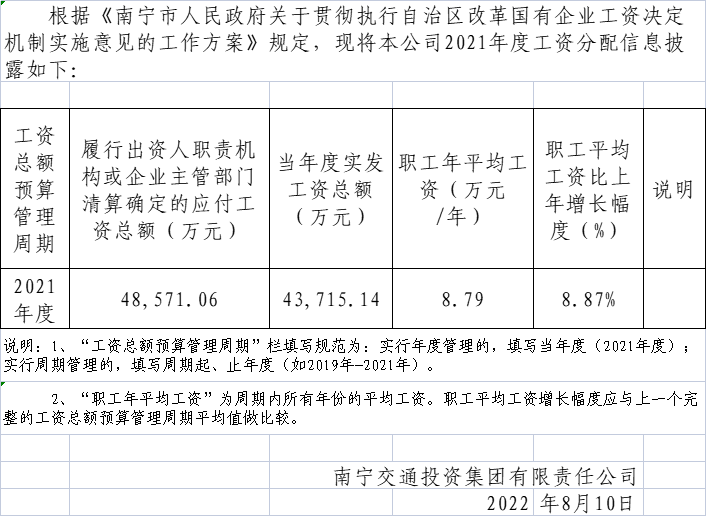 2021年度南寧市國有企業(yè)工資分配信息披露表
