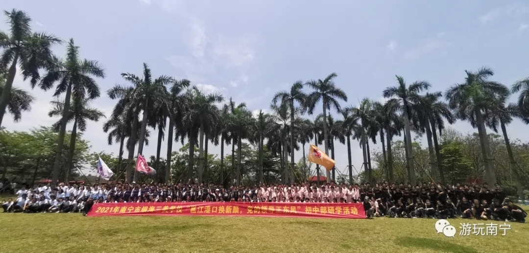 2021年5月8日,南寧市銀海三美學(xué)校初一年級800多名學(xué)生“邕江港口換新顏,黨的領(lǐng)導(dǎo)正東風(fēng)”研學(xué)活動在南寧市老口航運樞紐研學(xué)基地開展。