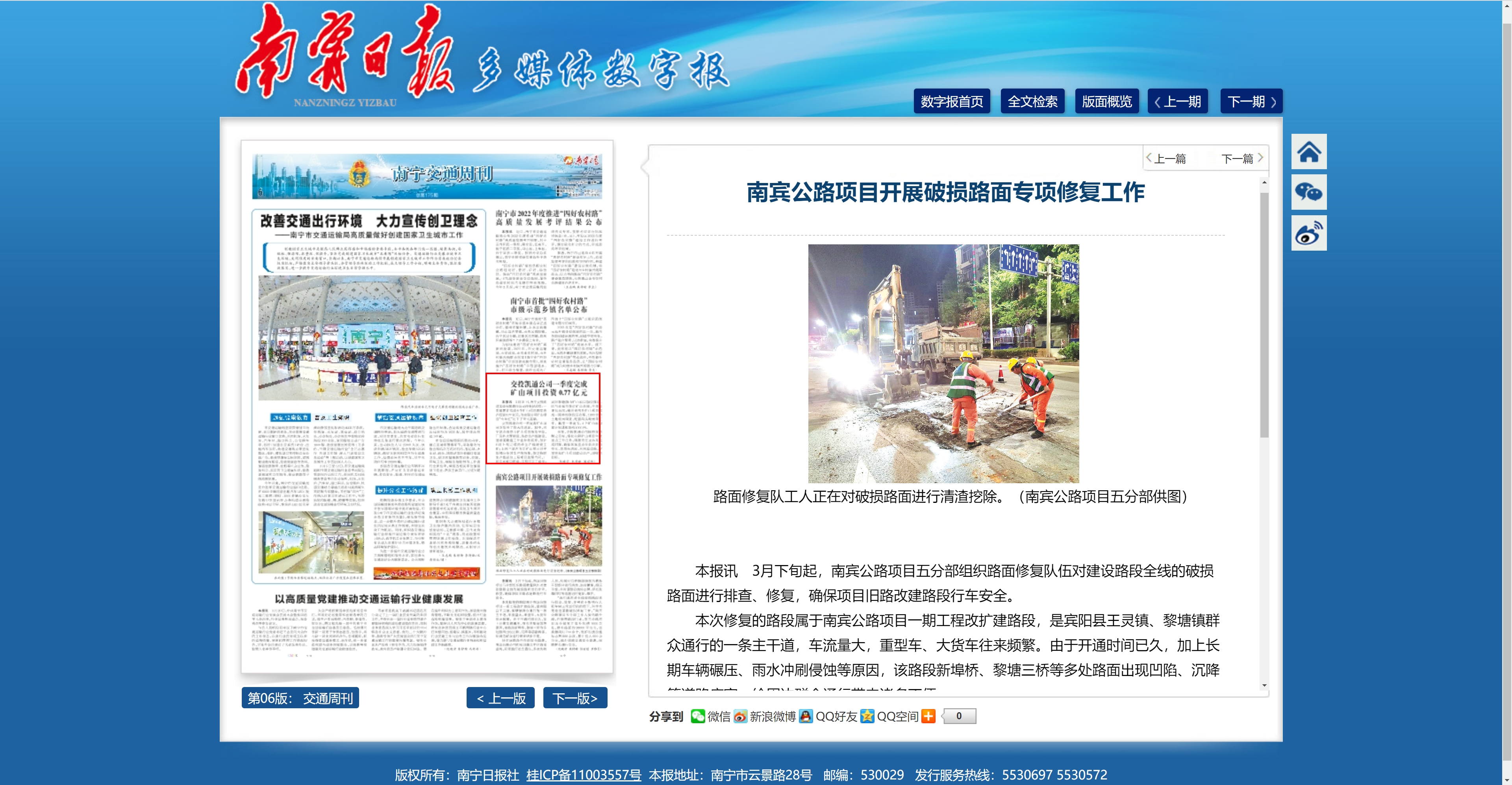 南賓公路項(xiàng)目開展破損路面專項(xiàng)修復(fù)工作