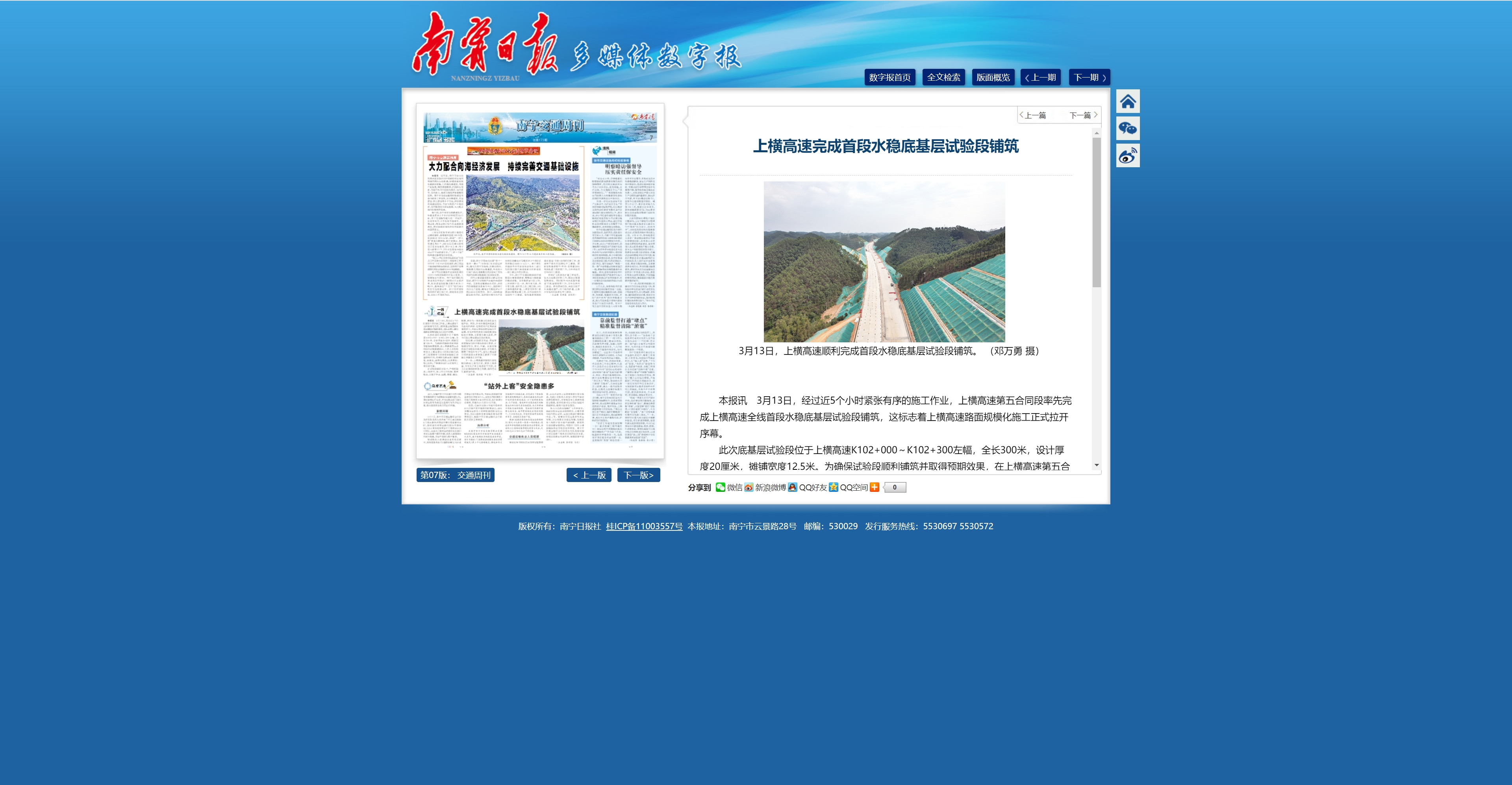 上橫高速完成首段水穩(wěn)底基層試驗段鋪筑